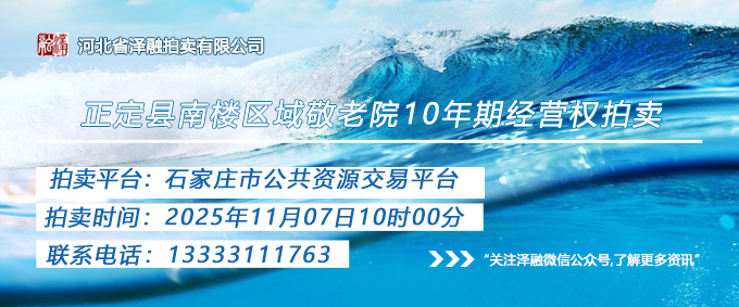 [拍賣公告]正定縣南樓區(qū)域敬老院10年期經(jīng)營權拍賣(三次)20251107